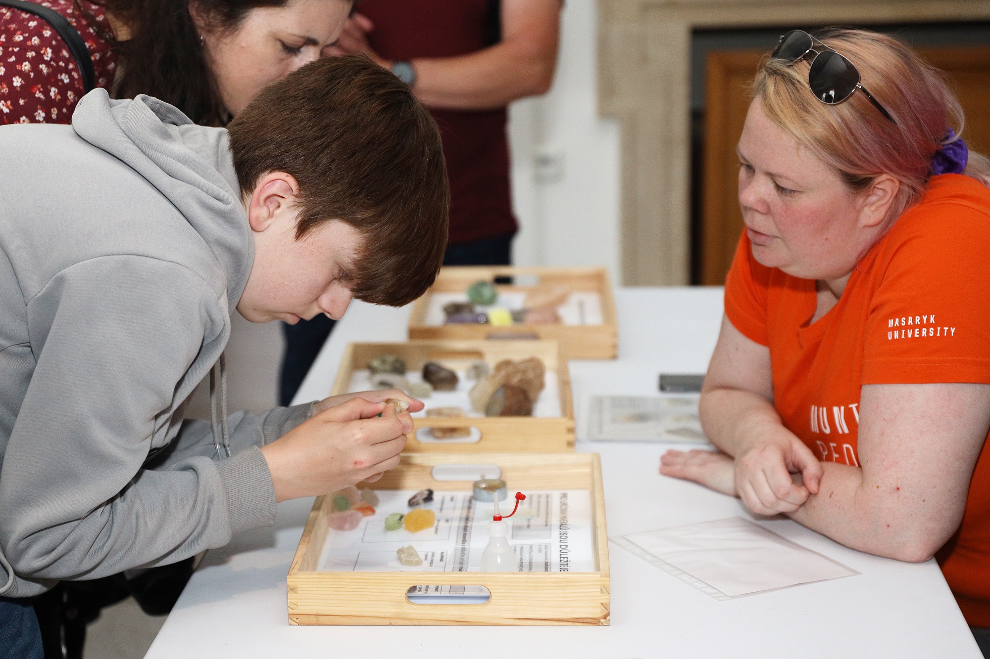 Pro návštěvníky se sluchovým postiženým a neslyšícím nabídlo Moravské zemské muzeum o letošní BMN ve spolupráci se Střediskem Teiresiás při Masarykově univerzitě komentovanou prohlídku v expozici Svět nerostů a výstavou Světy ukryté v kameni.