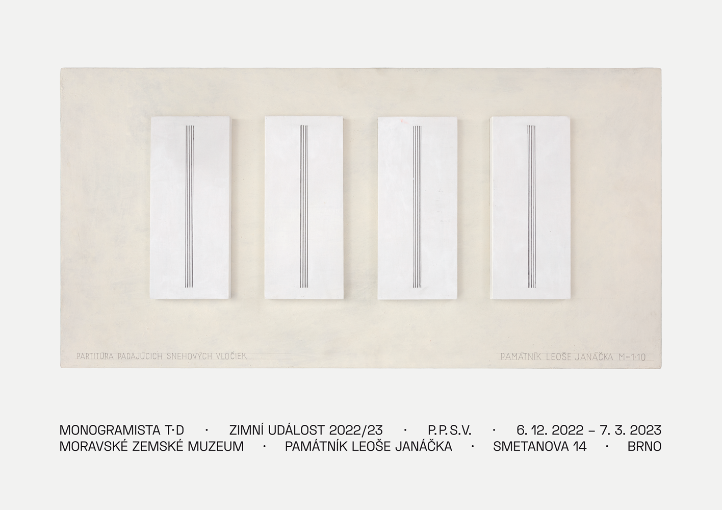 Výstava představuje bezmála tradiční projekt, který již po čtvrté zpřístupňujeme v Památníku Leoše Janáčka mezi svátkem sv. Mikuláše a MDŽ (6. 12. 2022 - 7. 3. 2023). Čtyři obrazy, které tvoří jistou grafickou partituru s poetickým názvem "Partitura padajících sněhových vloček", jsou opět konfrontovány v nových souvislostech i nové instalaci.